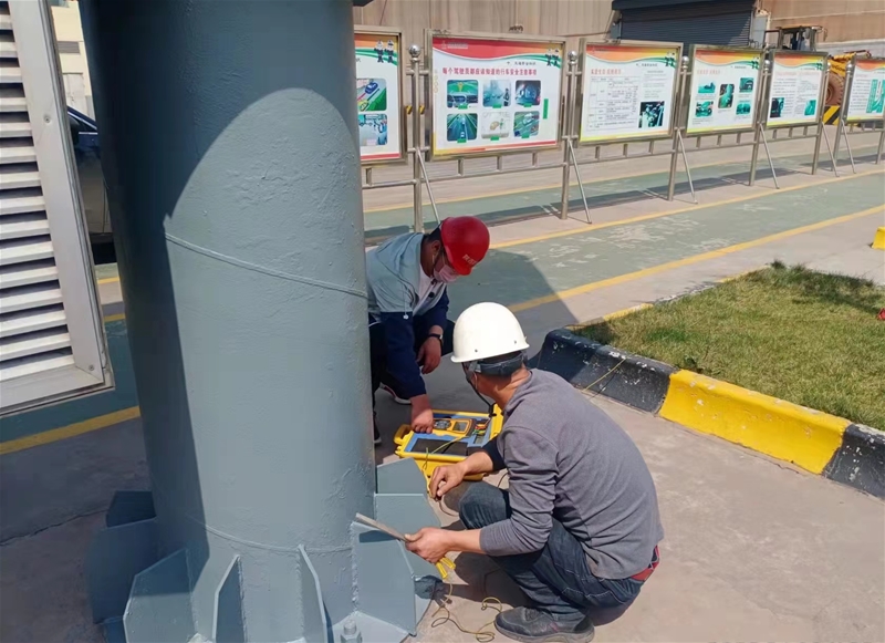 此次檢測,嚴格執(zhí)行防雷技術(shù)規(guī)范和檢測程序,共繪制完善防雷接地示意圖63張,對公司家屬樓、廠區(qū)所有廠房、煤氣柜、煤氣管網(wǎng)、加油站、變電站及通訊機房等設(shè)備設(shè)施進行了全面檢測。經(jīng)檢測,各建筑物及設(shè)施設(shè)備均符合防雷要求。此次防雷檢測有效降低了雷雨季節(jié)設(shè)施設(shè)備的運行風(fēng)險,為公司在雷雨季節(jié)安全運行奠定了堅實基礎(chǔ)。
