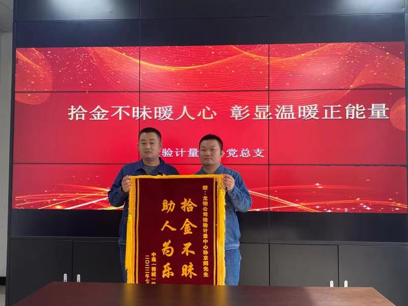 7月24日,王師傅為孫京輝送來一面“拾金不昧 助人為樂”的錦旗,并激動(dòng)地說道:“龍鋼公司的職工,素質(zhì)真高,為你們點(diǎn)贊!”