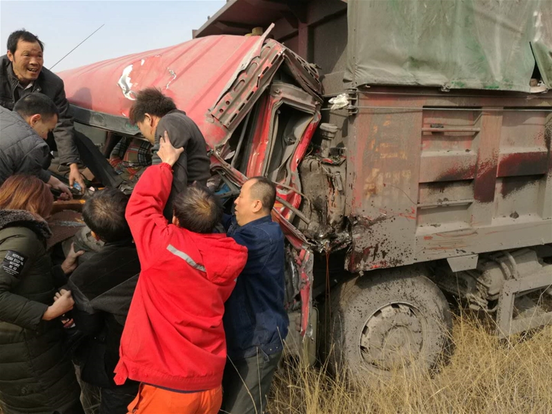 2017年11月的一天,他和同事出差前往山西省河津市對高鈣灰進(jìn)行市場調(diào)研。返回途中,他發(fā)現(xiàn)兩輛車因交通事故導(dǎo)致司機(jī)被擠壓在駕駛室內(nèi),一人已經(jīng)昏迷,另一人雙腿無法動彈,頭部正在流血。他當(dāng)機(jī)立斷,喊了一嗓子“停車,趕快幫忙救人!”